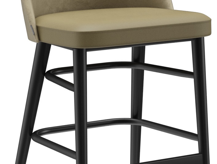 Timeless and classic, the Hada bar stool presents itself as the perfect complement to the Hada chair and armchair from the Retro Style Comfort family. For this particularly comfortable model, the upholstery fabrics Cosy and Minea as well as three bases are available: natural oak, Merano brown beech, or black with brass sleeves for an extravagant look. Alternatively, there is a frame made of black metal.- Timeless retro design: Hada looks classically high-quality and fits in restaurants, bars, and hotel lounges