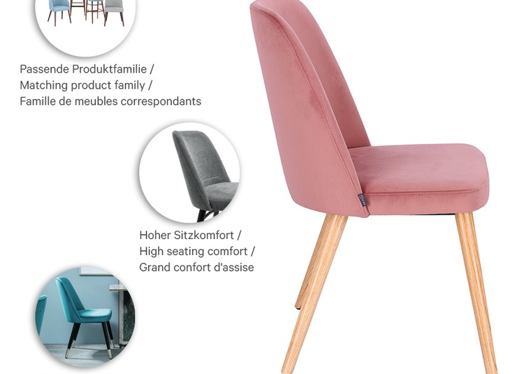 Timeless, classic, and with a clear retro touch: the upholstered shell chair Hada fits into restaurants, bars, or hotel lounges – optionally with or without armrests. The comfortable upholstered shell is available in the fabrics Cosy and Minea. For the look, three wooden bases in Merano brown, oak, or black with brass feet are available, alternatively a black metal frame. Practical in operation: the black swivel base with return automatically aligns when getting up, looks instantly tidy, and saves steps for service. At the same time, the swivel function makes sitting down and standing up easier and reduces chair sliding – quieter and gentler on the floor.- Timeless retro design: Hada looks classically high-quality and fits into restaurants, bars, and hotel lounges